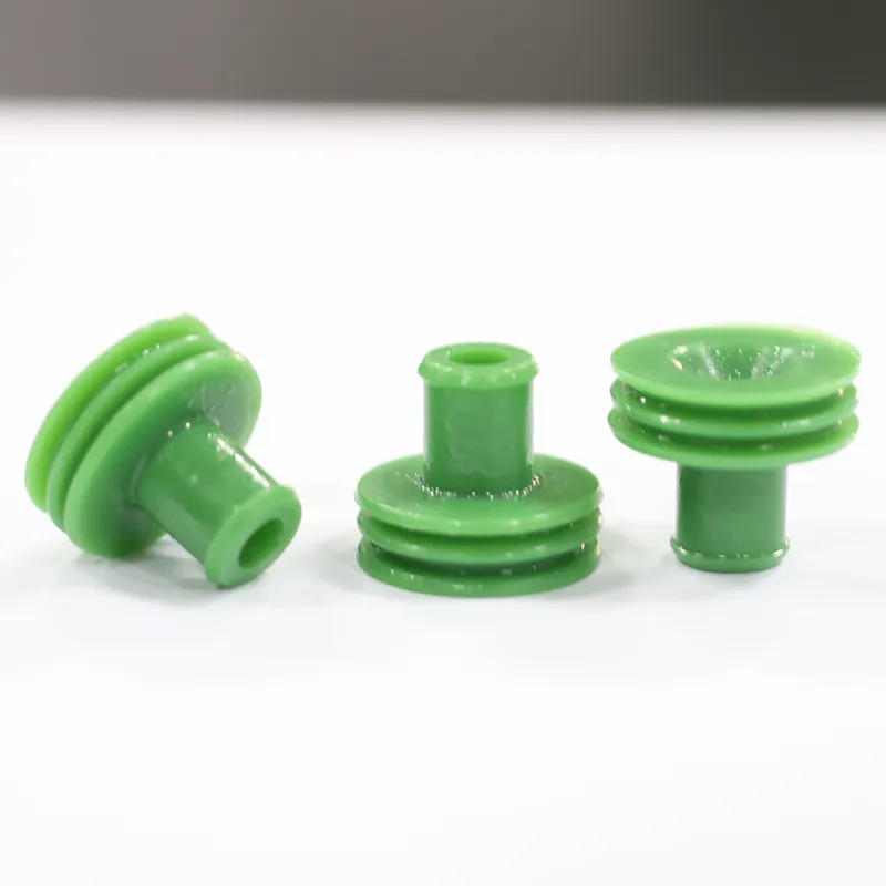 Уплътненията с единичен проводник, известни също като водоустойчиви тапи, осигуряват водоустойчивост и устойчивост на влага, като ефективно предотвратяват проникването на течности и защитават нормалната работа на оборудването. Едножилните уплътнения са направени предимно от материали като силикон, гума и пластмаса. По-специално силиконът предлага устойчивост на висока температура и устойчивост на стареене. Тези материали се използват широко за хидроизолация в автомобилни компоненти като фарове, кабелни снопове и батерии, осигурявайки безопасна и стабилна работа на електрическата система на автомобила.
